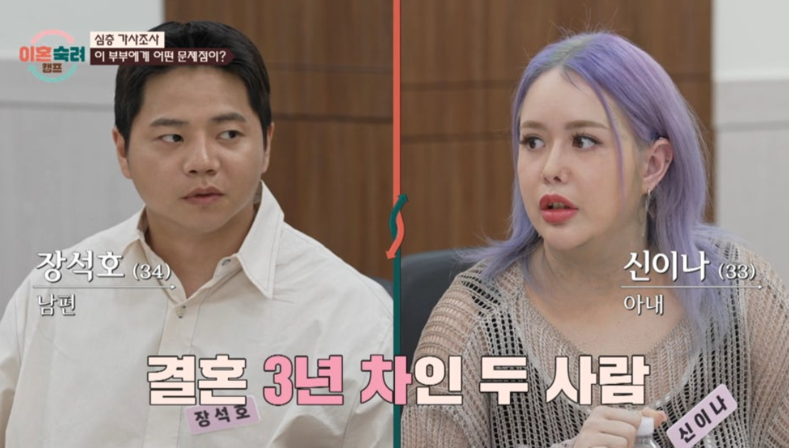 이혼숙려캠프 분노부부 남편 장석호(34)와 아내 신이나(33)는 재혼 부부다.