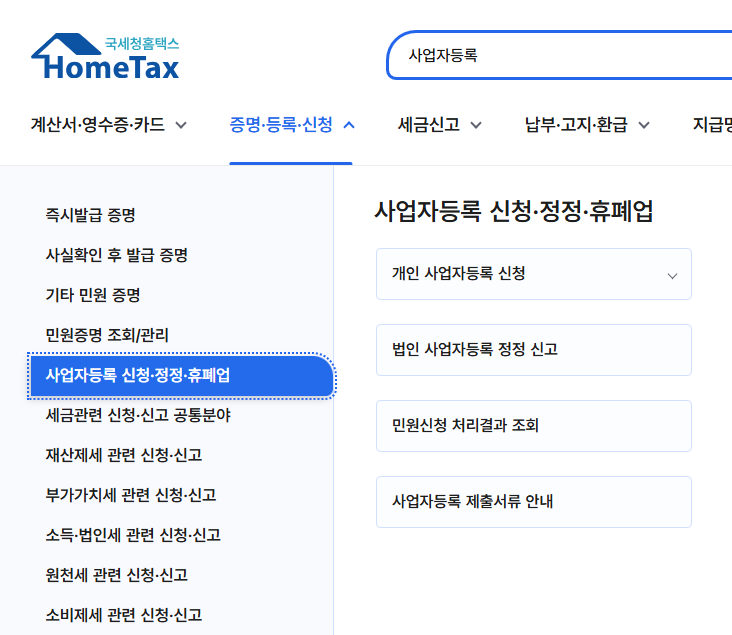 🔹 온라인 신청: 국세청 홈택스 → 사업자등록 신청