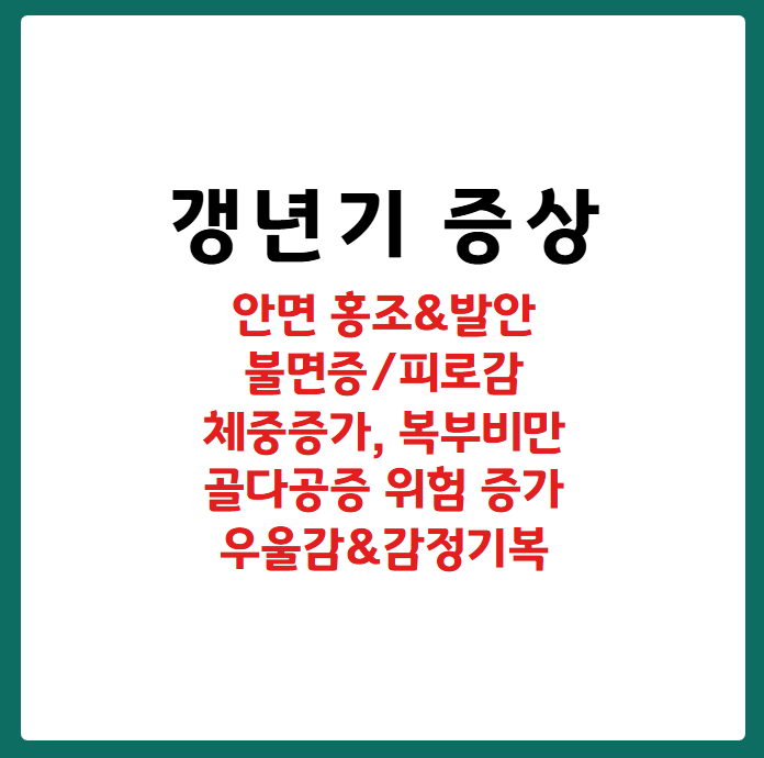 📌 갱년기 증상은 개인차가 있지만, 대표적으로 다음과 같은 변화가 나타남