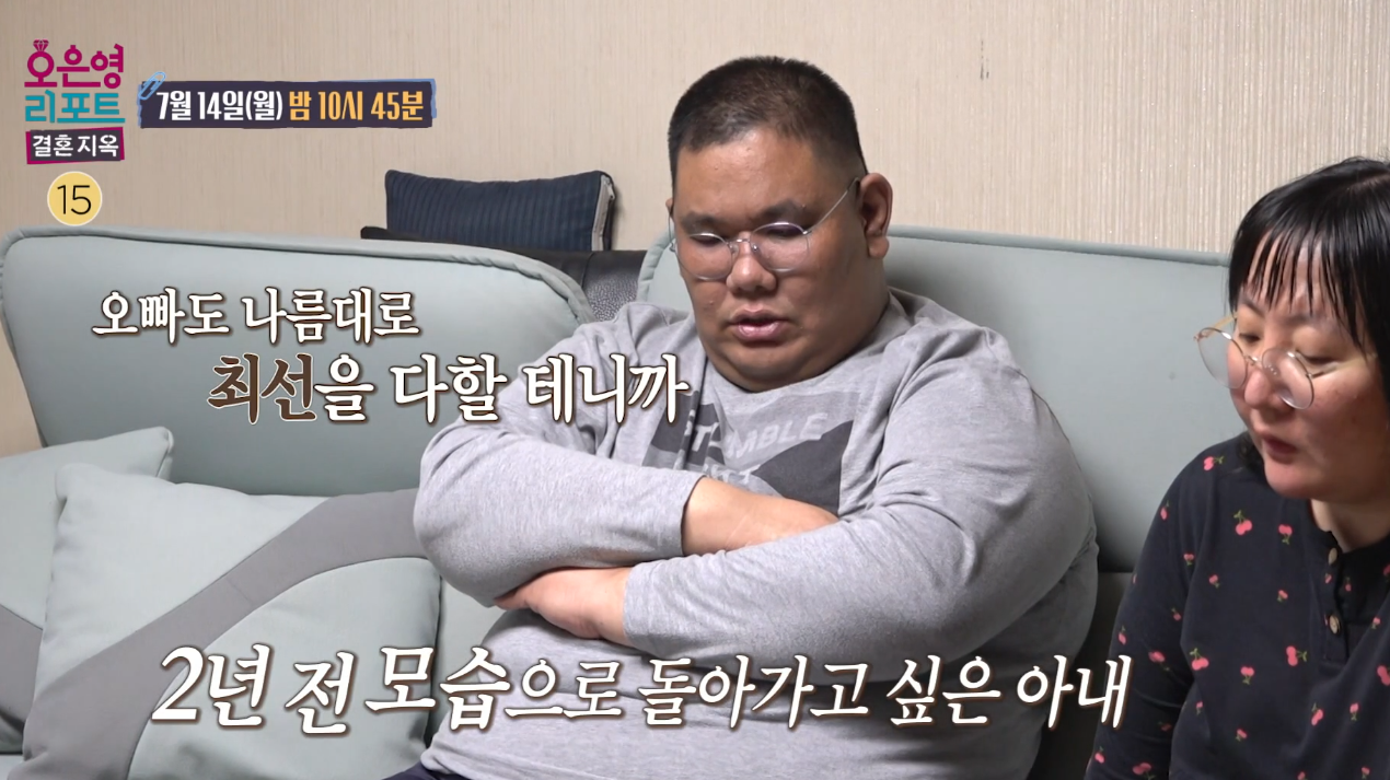 방송에서는 남편이 아내에게 “운동하라”며 눈치를 줍니다.