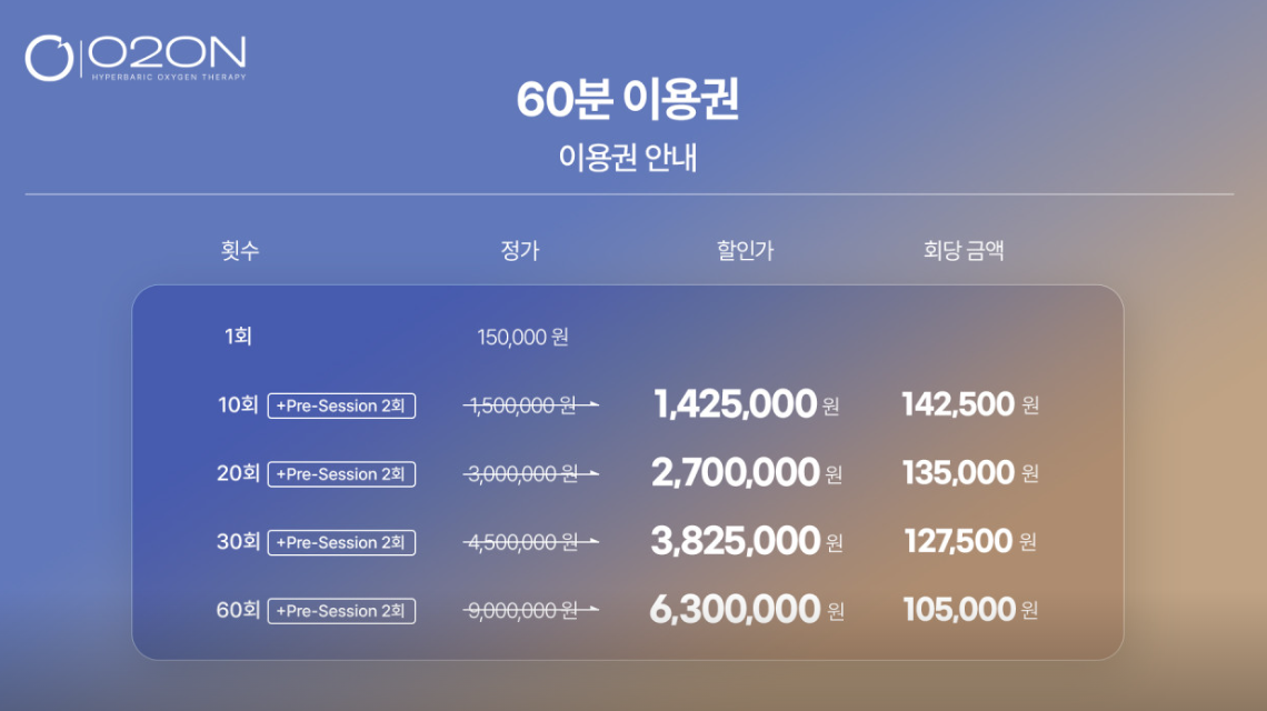 기압을 높여 산소 흡수를 극대화해 혈액순환 개선, 세포 재생, 면역력 강화 등의 효과를 기대할 수 있습니다.