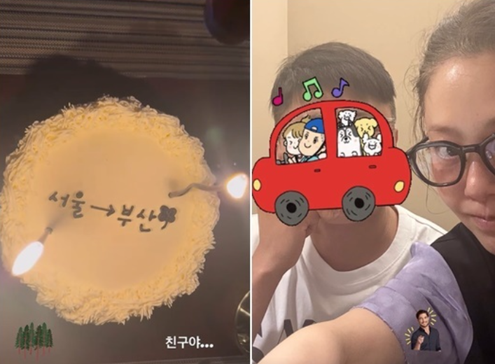 함께 찍힌 ‘남사친’ 그리고 ‘서울→부산’이라고 적힌 케이크까지…