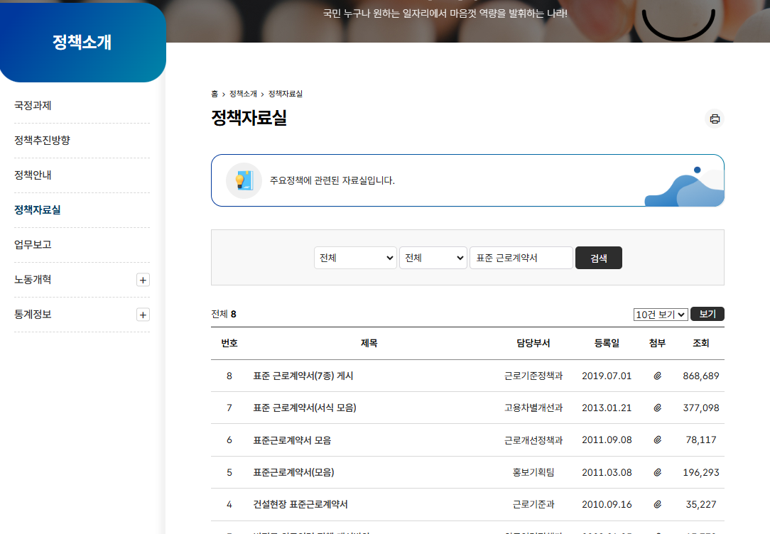 - ✅ 고용노동부 홈페이지에서 공식 양식 확인 ( 정책자료실 > 표준 근로계약서 검색 )
