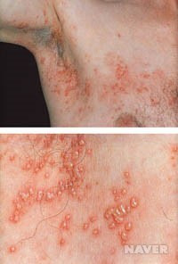 - 신경을 따라 붉은 반점(발진)이 나타나기 시작