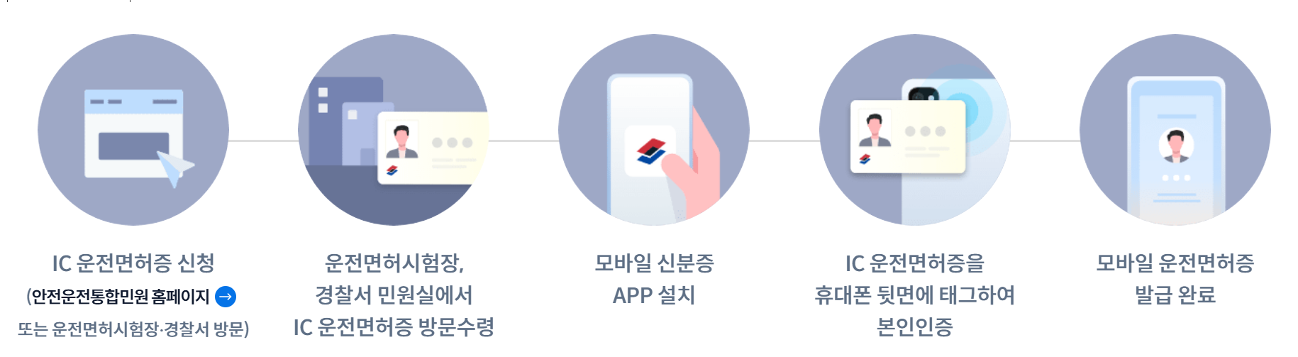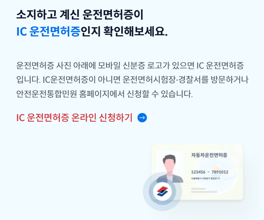 - IC 운전면허증 보유자는 스마트폰 NFC 기능을 활용하여 면허증 태깅으로 간편 등록