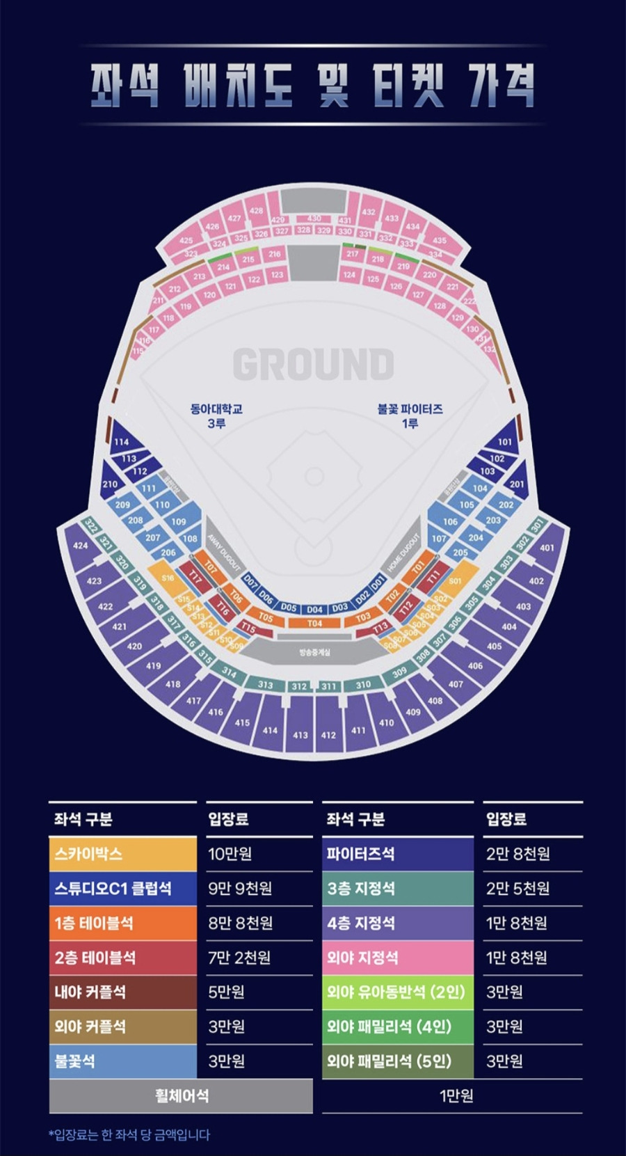 - 내야 커플석: 50,000원