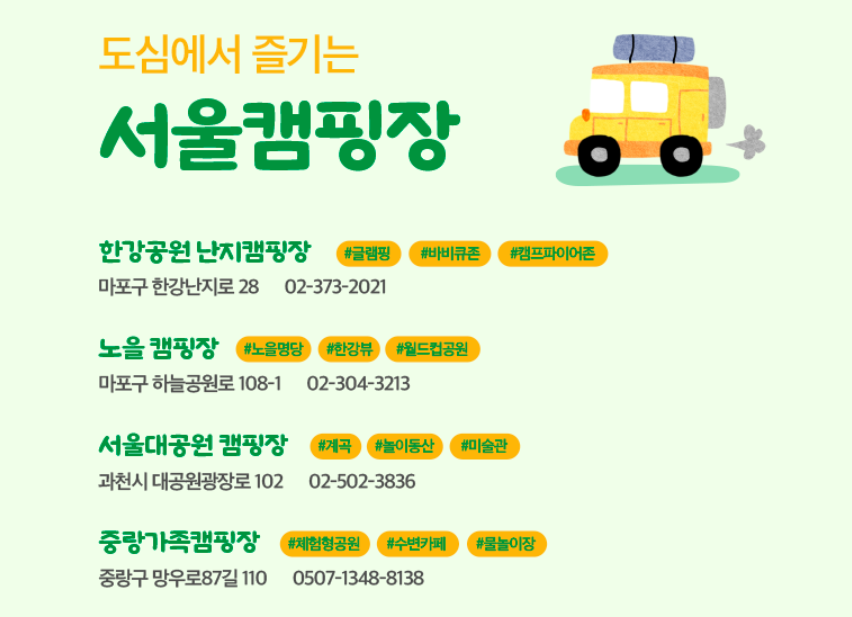 '서울캠핑지도' 참고해서 서울캠핑장 예약 일정 함 잡아보세요!