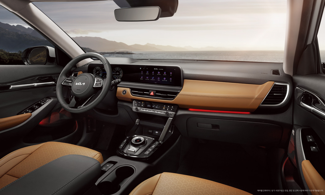 풀체인지된 셀토스는 더욱 미래지향적인 외관으로 업그레이드되었습니다. 최신 기아 패밀리룩을 반영한 타이거 노즈 그릴과 LED 헤드램프는 차량의 고급스러움을 한층 더 강조합니다. 또한, 공기역학적으로 설계된 차체 디자인은 연비 효율성을 높이는 데 기여합니다