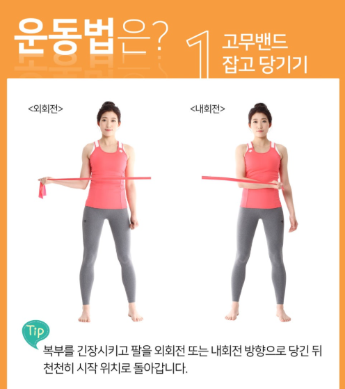 ✅ 근력 운동(밴드 운동) → 어깨 주변 근육 강화
