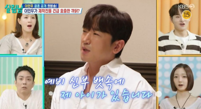 신화 멤버 이민우가 살림하는 남자들 시즌2에서 예비신부와 2세 임신 소식을 전하며,