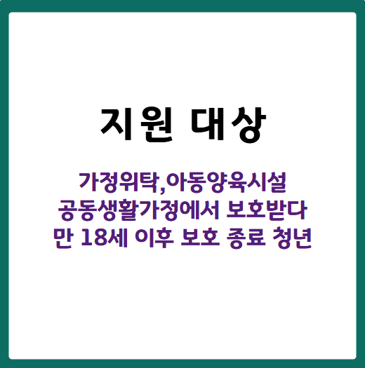 | 지원 대상 | 보호종료 청년 (18세 이상, 24세까지 가능) |