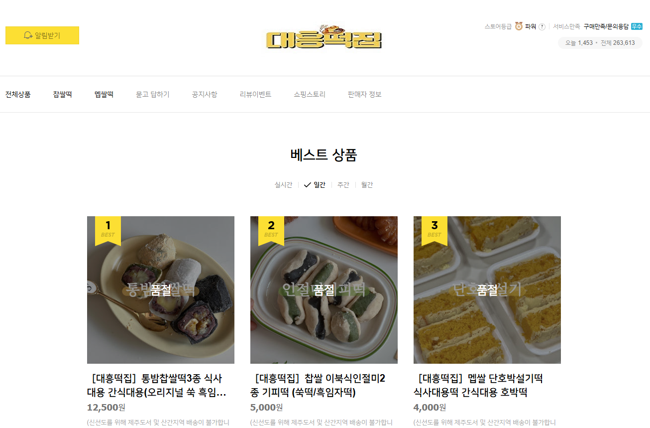 "매장 방문이 어려워도 전국 어디서나 대흥떡집의 찹쌀떡을 즐길 수 있다!"