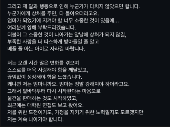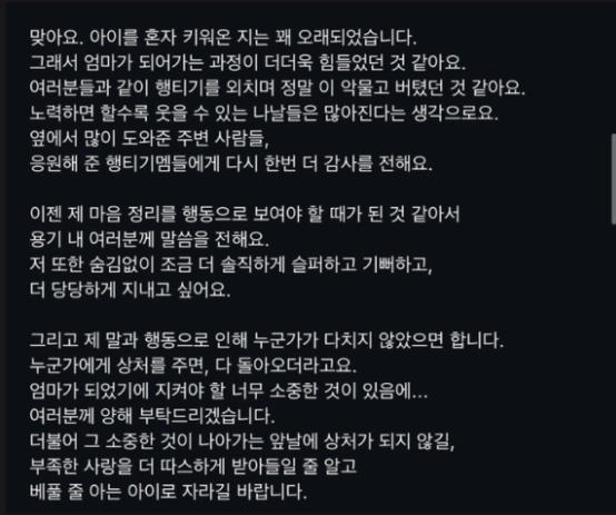 비록 관계는 끝났지만 콘텐츠의 진정성과 따뜻함은 여전합니다.