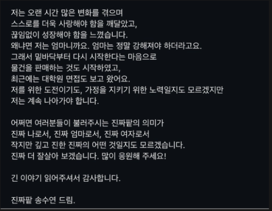 일부는 ‘의도된 콘텐츠’로 봤지만, 송수연의 표정에서 진심이 느껴졌다는 반응도 많았죠.