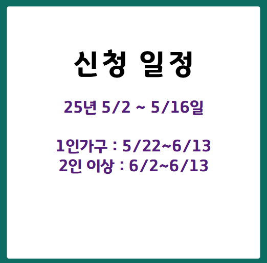 - 1차 신청기간: 2025년 5월 2일~5월 16일 (9영업일)