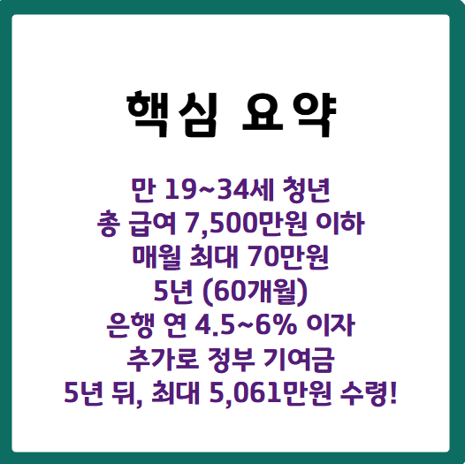 | 가입 대상 | 만 19~34세 청년 + 총급여 7500만원 이하 |