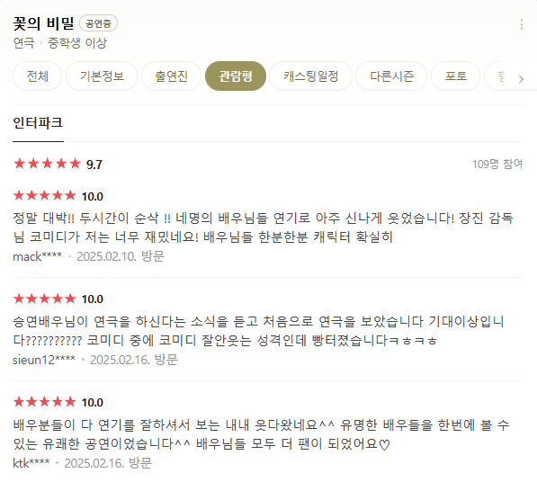 이미 관람평이 너무 좋아 2차 3차 티켓 예매가 시작되고 있네요