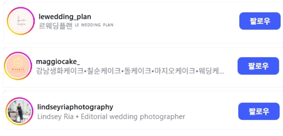 - 웨딩 관련 계정 팔로우 이외에 특별한 증거 없음