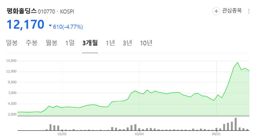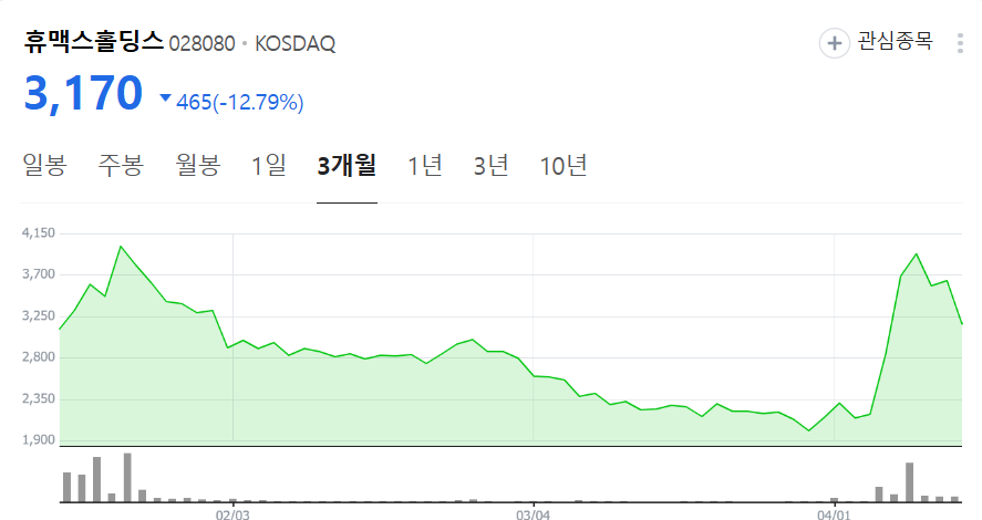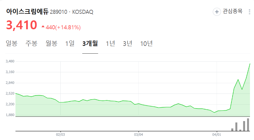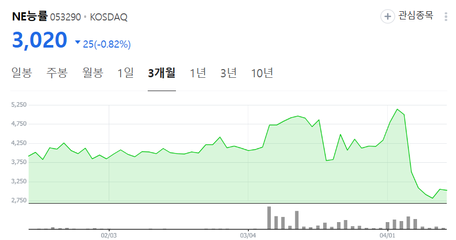 - 최근 3개월 추이를 보면 3월 까지 주가에 큰 변동이 없다 4월 대통령 파면후 급락
