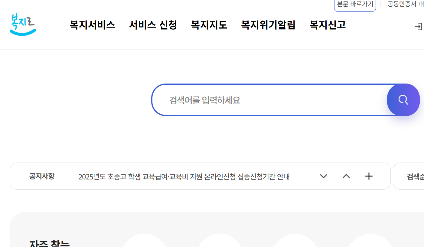 - 복지로 사이트 접속 (www.bokjiro.go.kr)