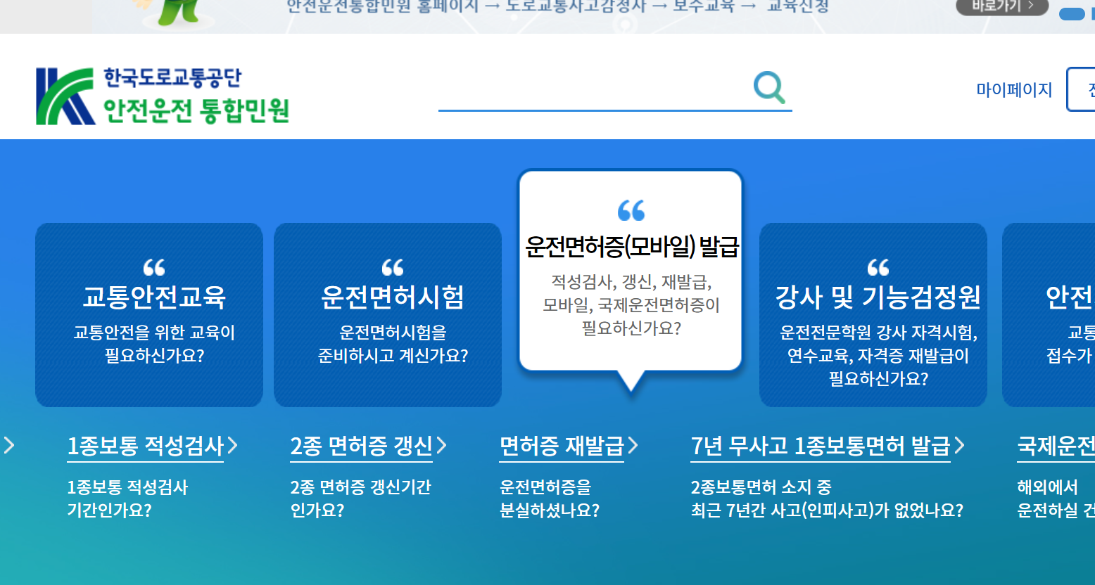 - 도로교통공단 안전운전 통합민원 접속