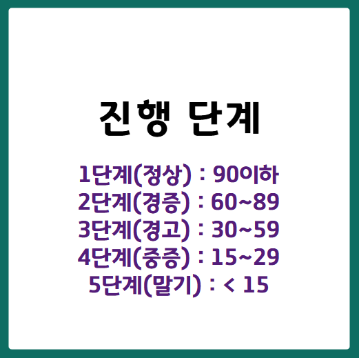 | 단계 | 사구체여과율 (eGFR) | 상태 |