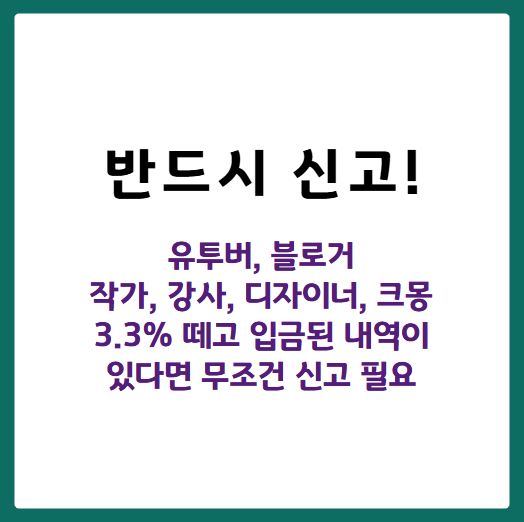 - ✔️ ‘3.3% 떼고 입금’된 내역이 있다면 무조건 신고 필요