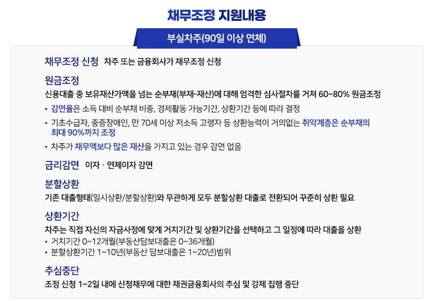 ✔ 부실 차주: 연체 기간에 따라 원금 일부 감면 가능 (최대 60~90%)
