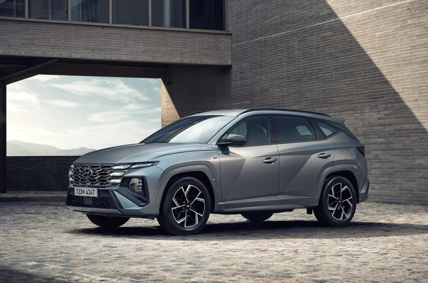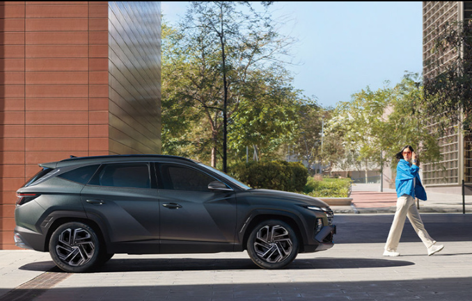 ✔ 투싼 HEV → 미래지향적 스타일, 각진 캐릭터 라인 강조