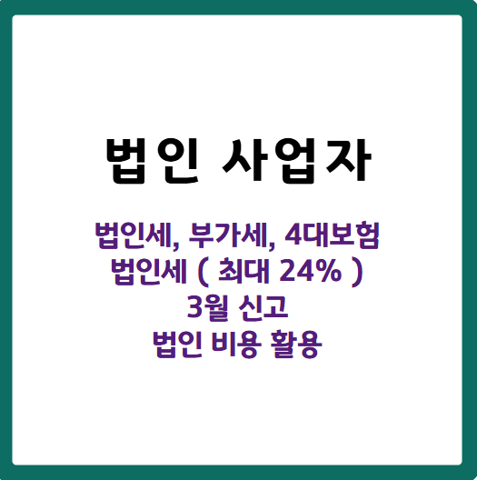 | 주요 세금 | 종합소득세, 부가세, 4대 보험료 | 법인세, 부가세, 4대 보험료 |