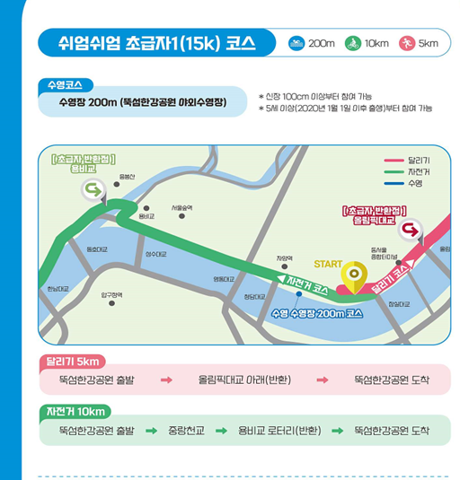 초급자2 : 한강수영 300m+자전거10km+달리기5km