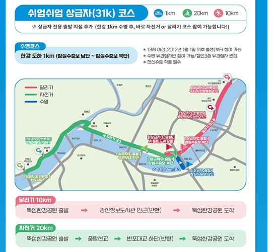 상급자 : 한강수영 1km+자전거20km+달리기10km