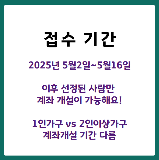 - 1인 가구 vs 2인 이상 가구에 따라 계좌 개설 일정 다름